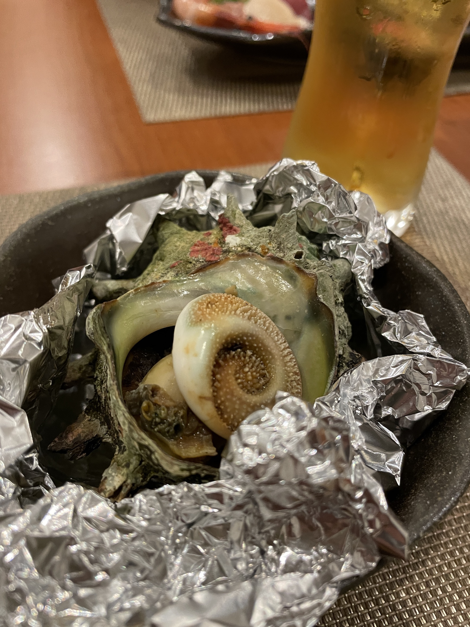 さざえはただ焼いたのではなく、蓋を開けるとちゃんと中身は小さくカットされ、奥にわかめが入っていました。丁寧なお仕事が嬉しいですね〜