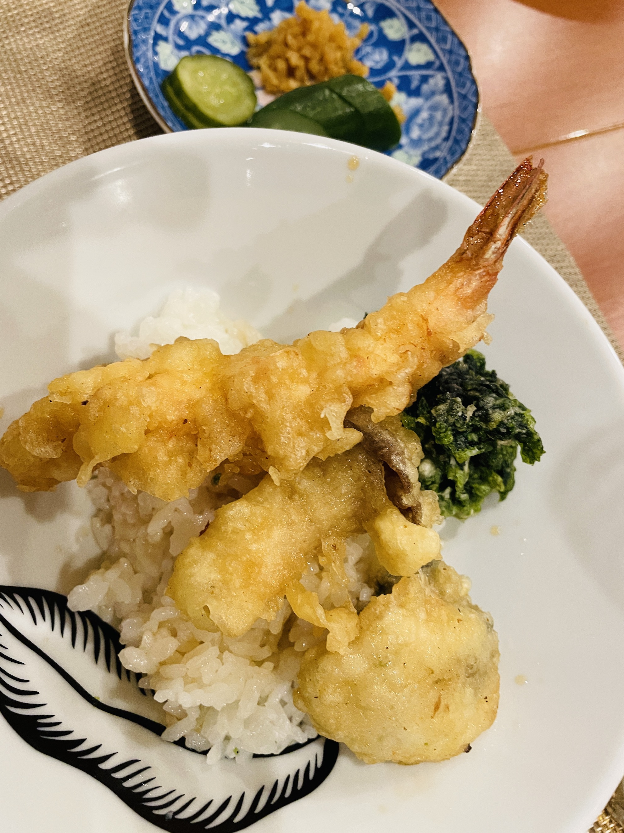 そして最後の〆は天丼♪ 先にご飯の量を聞いてくださり、お腹の具合に合わせて出してくれました。