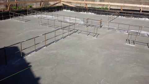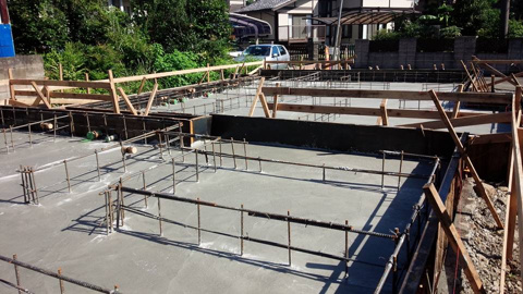昔の安い建売物件は、この下一面の鉄筋コンクリートがなく、地面に直接基礎を打ってました。①~③の工程がなく、建物の下部分の大半には地面が覘いていたんです。